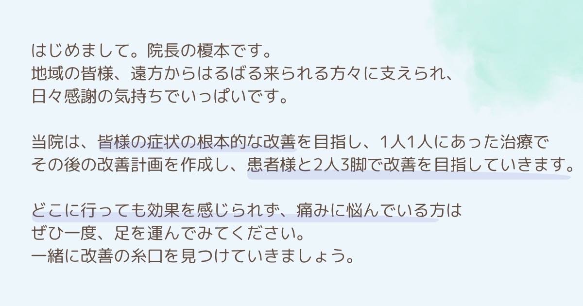 ③根本改善を目的とする、身体に関する丁寧な説明と、アフターフォロー